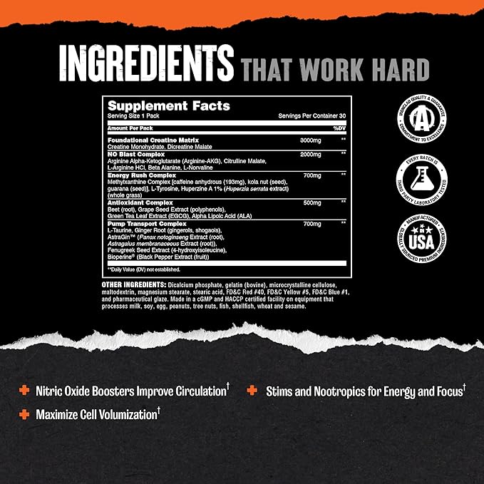 Animal Pump Pre-Workout Supplement – for Energy, Focus and Muscle Volumizing, with Nitric Oxide Boosters Including Stims and Nootropics, Creatine, and Ultimate Pump Enhancer, 30 Packs