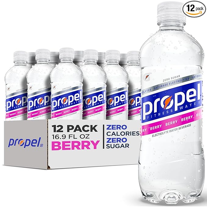 - Includes 12 (16.9 fl oz) bottles of Propel Electrolyte Enhanced Water, Berry flavored water with Zero Calories, Zero Sugar, Electrolytes for Hydration, and Vitamins C & E