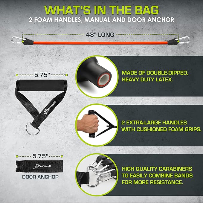 ProsourceFit Single Stackable Resistance Bands with Door Anchor and Exercise Guide, 16-20 LB, Heavy Duty Fitness Tube for Full-Body Exercises and Home Workouts, Black