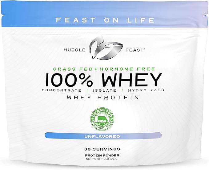 Muscle Feast 100% Grass Fed Whey Protein Powder, All Natural Hormone Free Paure Raised Whey Protein Powder for Women & Men- Whey Concentrate, Isolate & Hydrolyzed Protein Powder Blend- Unflavored, 2lb