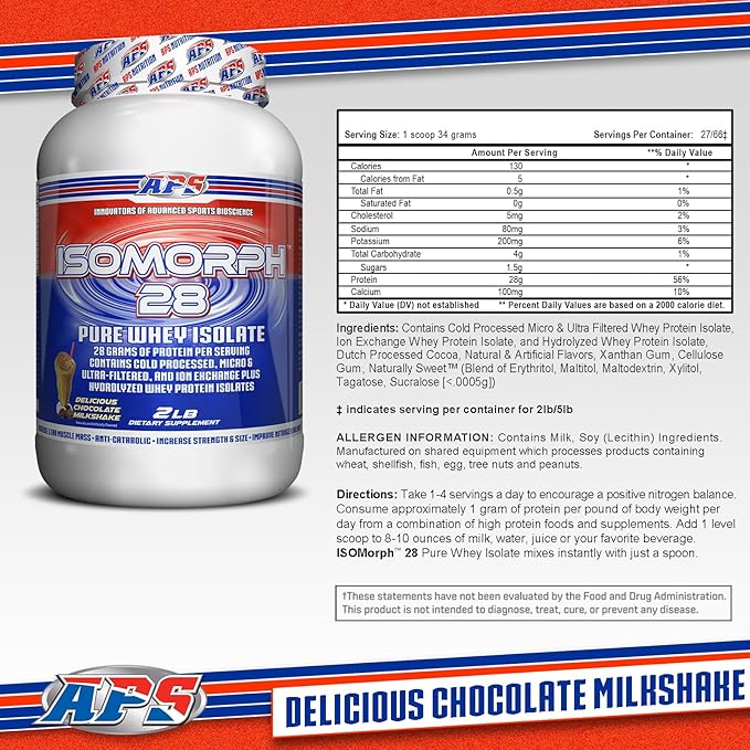 APS Nutrition IsoMorph 28 Protein Powder | Pure Whey Isolate | Cold Pressed, Ultra- Filtered, & Ion Exchange Isolates | 28g Protein | 2 Pound (Chocolate Milkshake)