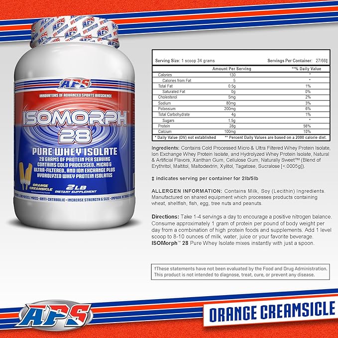 APS Nutrition IsoMorph 28 Protein Powder | Pure Whey Isolate | Cold Pressed, Ultra- Filtered, & Ion Exchange Isolates | 28g Protein | 2 Pound (Orange Creamsicle)