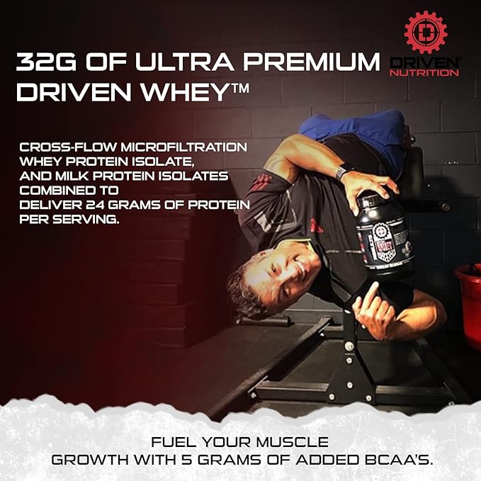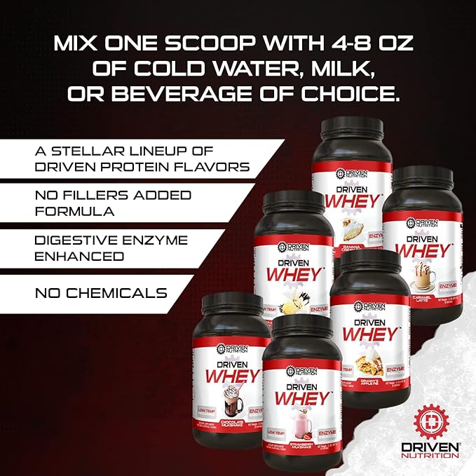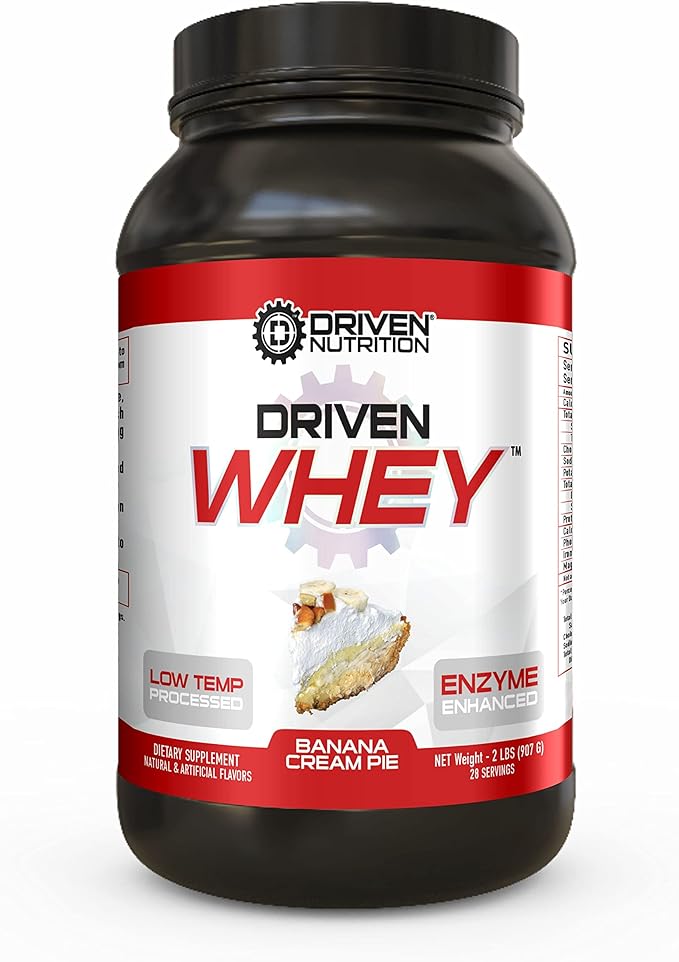 Driven WHEY- Grass Fed Whey Protein Powder: Delicious, Clean Protein Shake- Improve Muscle Recovery with 23 Grams of Protein with Added BCAA and Digestive Enzymes (2 lb, Banana Pie)