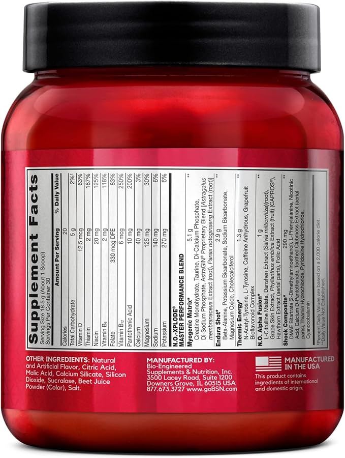 BSN N.O.-XPLODE Pre Workout Powder, Energy Supplement for Men and Women with Creatine and Beta-Alanine, Flavor: Watermelon, 30 Servings