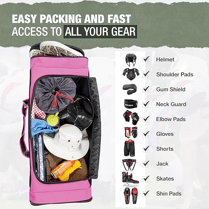 - πππππππππ: Our duffle is ideal for hauling sports gear and equipment for hockey, football, soccer, and the gym; However don't stop there, use it for camping, travel and even moving; A reliable, essential, and multifunctional lightweight duffle to cart multiple items anywhere, anytime