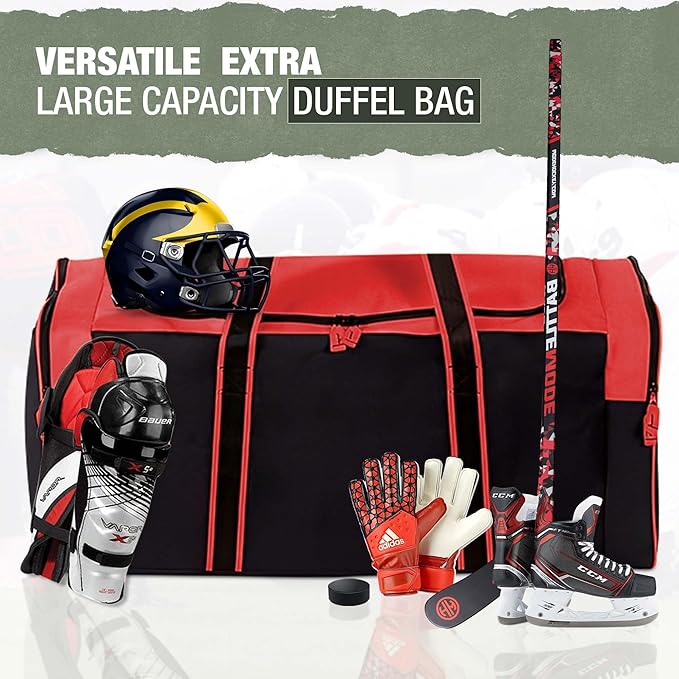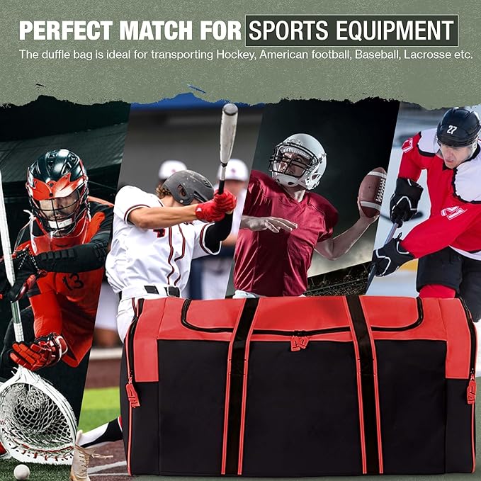 - πππππππππ: Our duffle is ideal for hauling sports gear and equipment for hockey, football, soccer, and the gym; However don't stop there, use it for camping, travel and even moving; A reliable, essential, and multifunctional lightweight duffle to cart multiple items anywhere, anytime