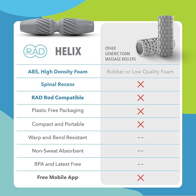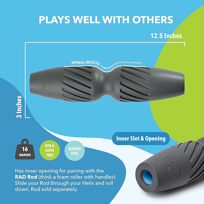 - Innovative Design: The RAD Helix features a high-density foam construction with a spinal recess to focus on muscles without impacting bones, and an inner opening to pair with the RAD Rod for added intensity.