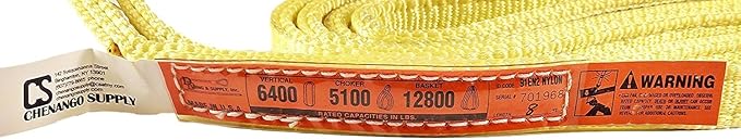 - 6,400 lbs vertical load, 5,100 lbs choker hold, and 12,800 lbs basket hold
