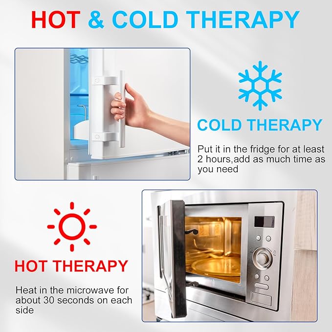 - NATURAL PHYSICAL THERAPY - Soft gel ice pack is safe for chilling in a freezer for cold compress to help control swelling, inflammation and sports pain. Heating in the microwave and hot water for hot therapy to get rid of pains by improving blood circulation, reducing joint stiffness, muscle spasms.