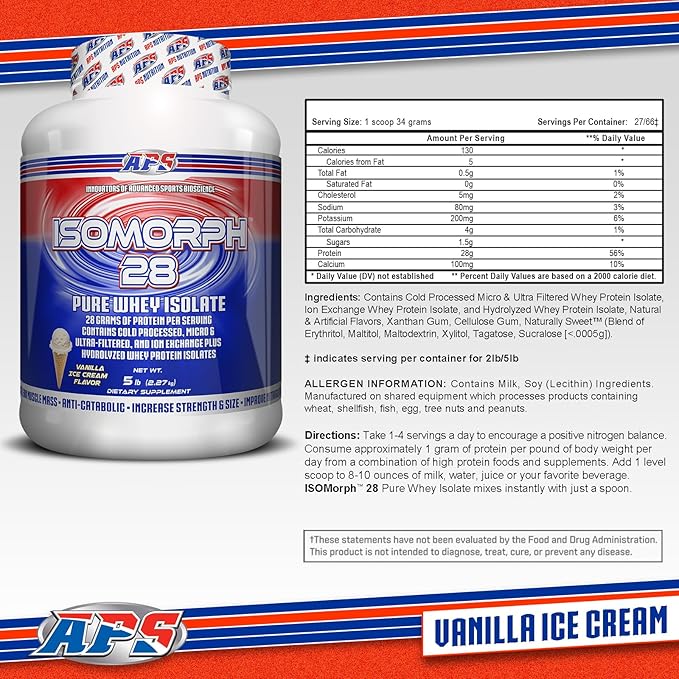 APS Nutrition Isomorph 28 Protein Powder | Pure Whey Isolate | Cold Pressed, Ultra- Filtered, & Ion Exchange Isolates | 28g Protein | 5 Pound (Vanilla Ice Cream)