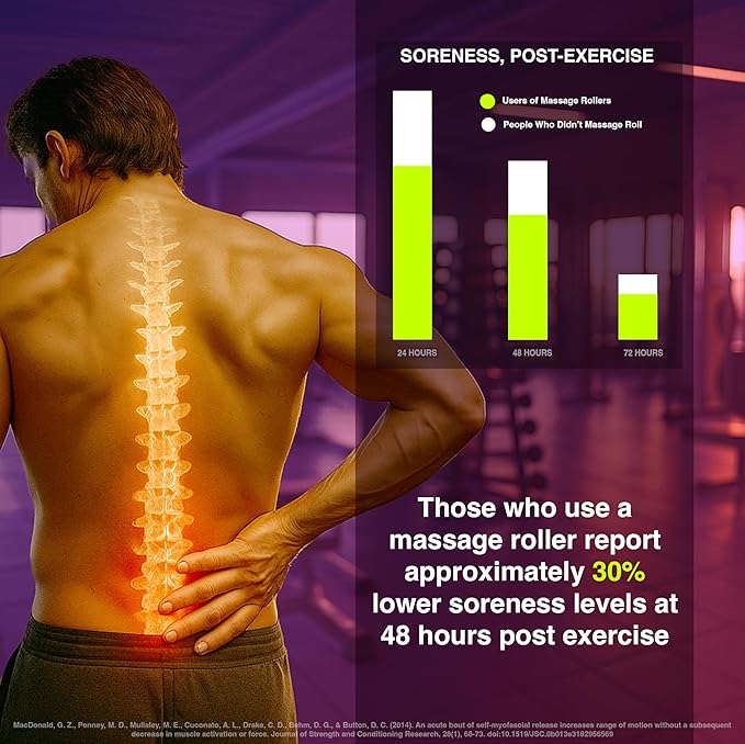 - QUICK AND EFFECTIVE: Foam rolling for just 20 minutes after exercise, and again at 24 and 48 hours has been clinically proven to reduce recovery time by 20%, increase flexibility by 10%, and reduce soreness by as much as 30%. They have also been shown to decrease the risk of injuries in the first place