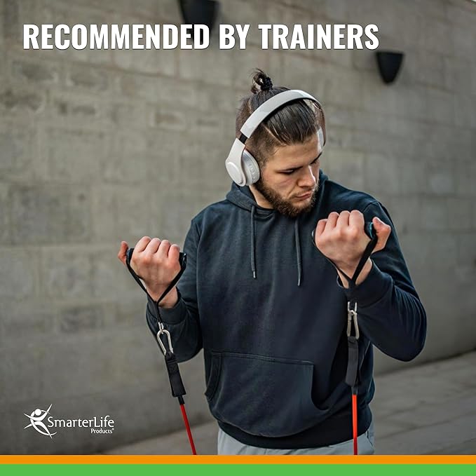 SmarterLife Resistance Bands with Handles, Physical Therapy Strap, Exercise Band to Tone Arms, Legs, Chest, Booty - 5 Exercise Bands with Handles, Ankle Straps, No-Slip Door Anchor, Storage Bag