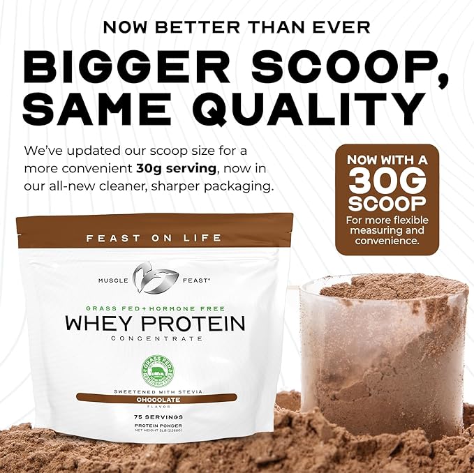 Muscle Feast Grass-Fed Whey Protein Concentrate Powder, All Natural, Hormone Free Pasture Raised Whey Protein Powder for Women & Men, Clean, Non-GMO & Gluten Free Whey Concentrate - Vanilla, 2lb