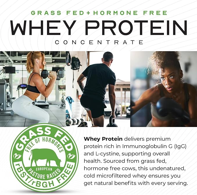 - GRASS FED WHEY PROTEIN CONCENTRATE: Natural whey concentrate powder that comes from pasture-raised, happy cows and is rBST- and rBGH-free.