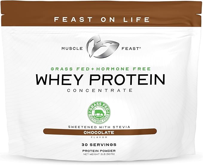 Muscle Feast Grass-Fed Whey Protein Concentrate Powder, All Natural, Hormone Free Pasture Raised Whey Protein Powder for Women & Men, Clean, Non-GMO & Gluten Free Whey Concentrate - Chocolate, 2lb