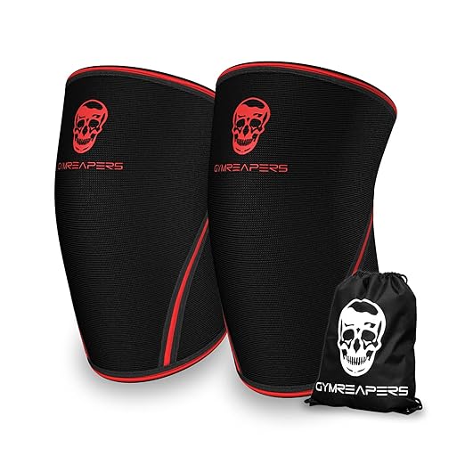 Knee Sleeves (1 Pair) w/ Bag - Knee Sleeve & Compression Support for Squats, Fitness, Weightlifting, and Powerlifting - Gymreapers 7MM Neoprene Sleeve Pair - 1 Year Warranty (Black/Red, XX-Large)