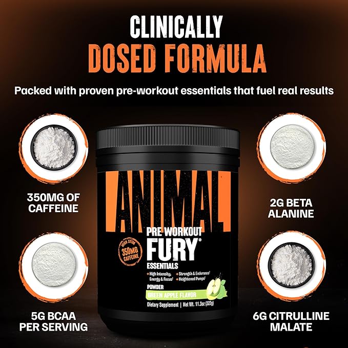 - Unleash Energy, Focus & Stamina – Animal Fury Pre Workout is built for athletes who train to dominate. With high-stim fuel and dialed-in focus, it helps you push harder, fight fatigue, and power through every phase, bulk, cut, or grind