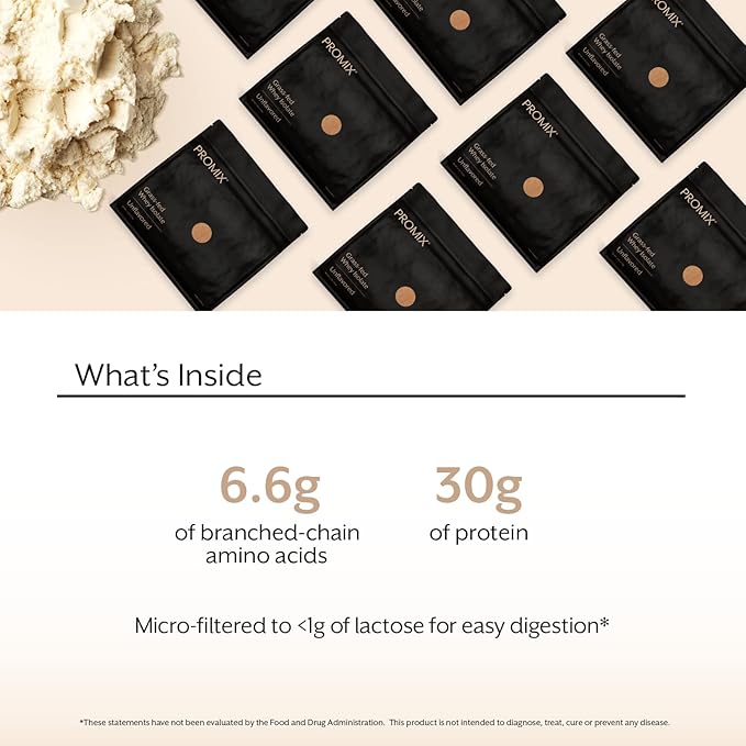 - Build Muscle & Improve Recovery: Promix Whey Isolate Protein Powder is a cold-processed and acid-free bioactive native whey isolate made from milk of grass-fed cows. Our unflavored protein powder contains naturaly occurring L-carnitine and lactoferrin, as well as sunflower lecithin, for improved absorption and blending.