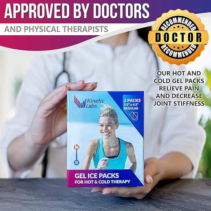 Gel Ice Packs for Injuries Reusable (2 Pack) 9.5" x 4.5" – Gel Cold Soft Ice Pack by Kinetic Labs – Flexible & Soft Packs for Knee, Shoulder, Back (Regular)