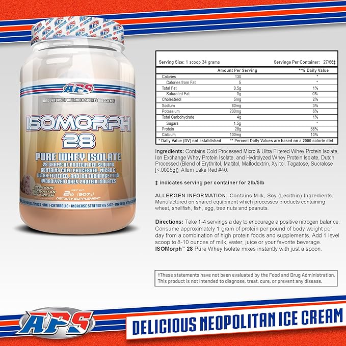 APS Nutrition Isomorph 28 Whey Powder, Neapolitan Ice Cream, 2 Pound