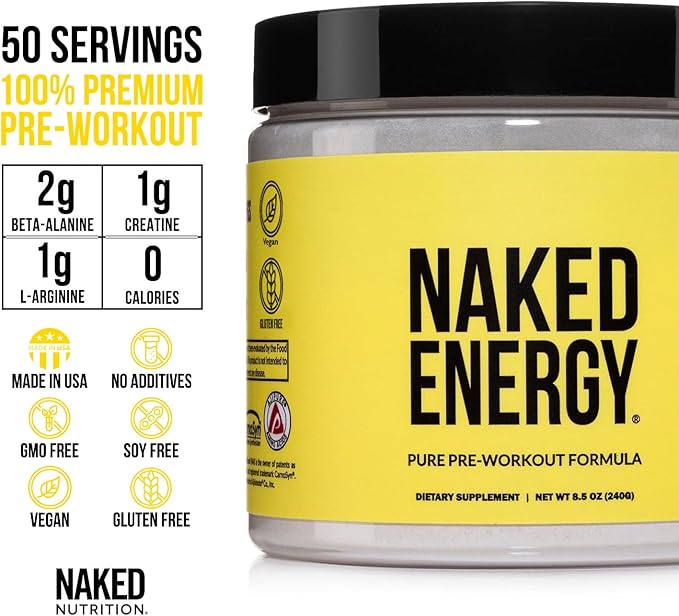 NAKED Energy - Pure Pre Workout Powder for Men and Women, Vegan, Unflavored, Healthy Pre Workout - No Added Sweeteners, Colors Or Flavors - 50 Servings