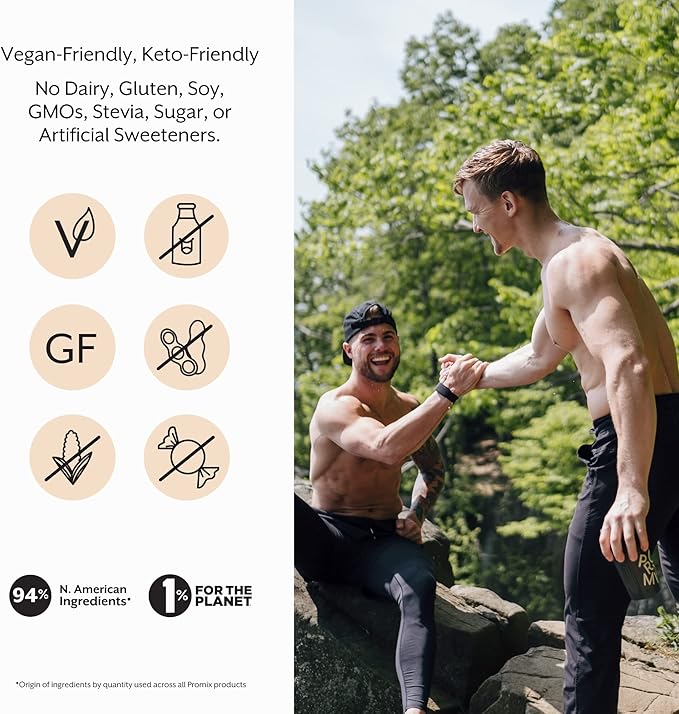 - More Than Nutrition: 94% of the ingredients in all Promix products sourced from North America. 67% lower carbon compared with rigid packaging. 1% For The Planet Member donating 1% of all sales to environmental protection.