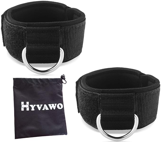 Ankle Straps Neoprene Padded Fitness Wrist Cuffs with D Ring High Strength Exercises Gym Pulley Strap for Cable Machines (Black 2 Pack)