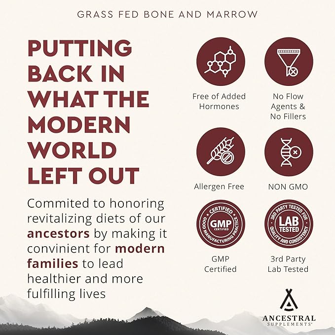 - NEW ZEALAND AND AUSTRALIAN GRASS FED BEEF: Made in small batches in the USA without GMOs, fillers, or flow agents and third party verified for purity, Ancestral Supplements' bone marrow capsules are sourced from 100% grass-fed cows, pasture raised without hormones in green fields.