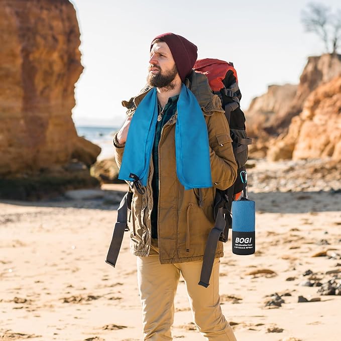 - Microfiber & Friendly to Skin: BOGI microfiber travel towel is made of high quality microfiber, which is smooth and compact, more soft, friendly to skin, no faded. BOGI quick dry towel can be also used as a sports towel, travel towel, yoga towel or as a mat for beach, bath, pool, swimming, water park, mountaineering, fitness, camping, hiking, picnic, etc. The camping towel can also be a sun shade and a cape to protect your skin against the sun. Very useful for all the year round.