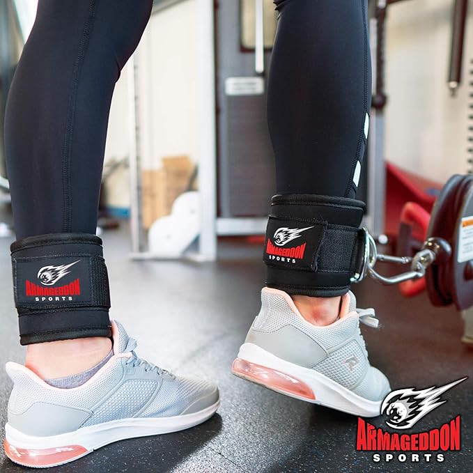 ARMAGEDDON SPORTS Pair of Quality Ankle Straps Double D-Rings for Cable Machines Attachment - Ankle Cuff for Leg Workout Equipment Exercise Machine - Ankle Cable Straps for Men and Women