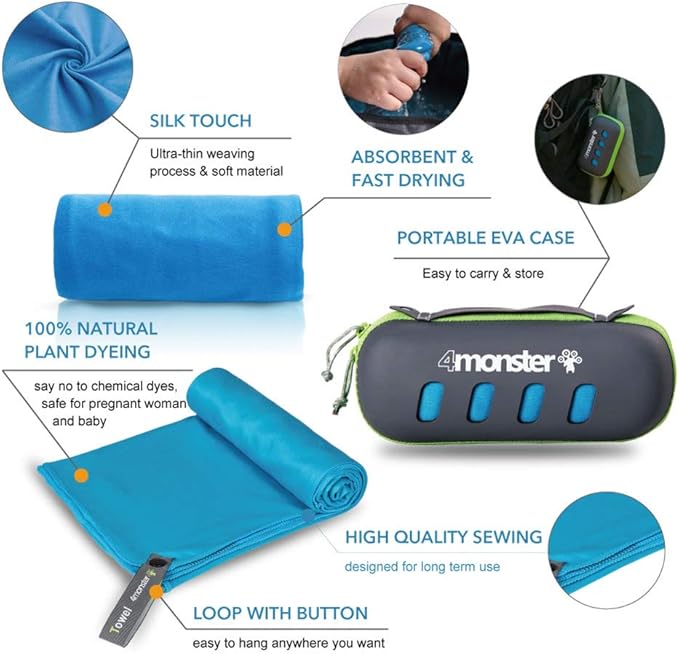 4Monster Camping Towel Super Absorbent-Quick Dry Microfiber Towel Ultra Compact & Soft-Travel Towel Lightweight for Backpacking,Hiking,Gym,Beach,Swimming,Yoga