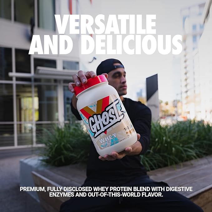 - Versatile and Delicious: GHOST Whey protein combines a premium, fully disclosed whey protein blend, a few digestive enzymes, and out-of-this-world Peanut Butter Cereal Milk flavor. 26 servings.