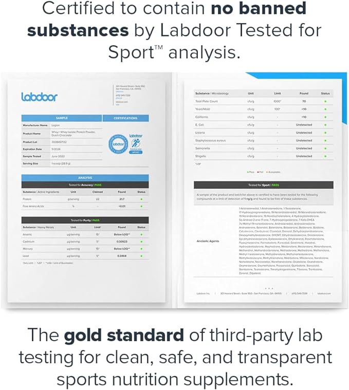 - Tested for purity and potency in an ISO 17025 accredited third-party lab, and independently certified to contain no contaminants or banned substances by Labdoor. Every bag of our Whey+ protien powder is guaranteed to provide exactly what the label claims and nothing else.