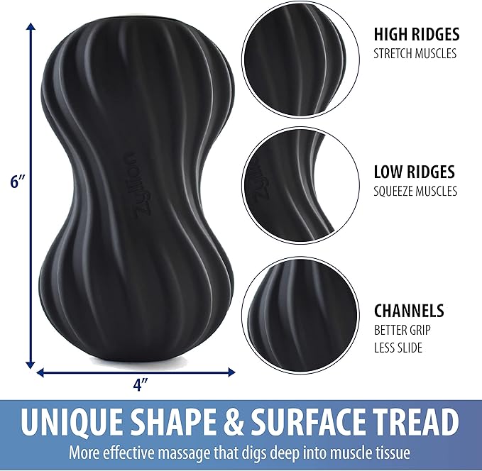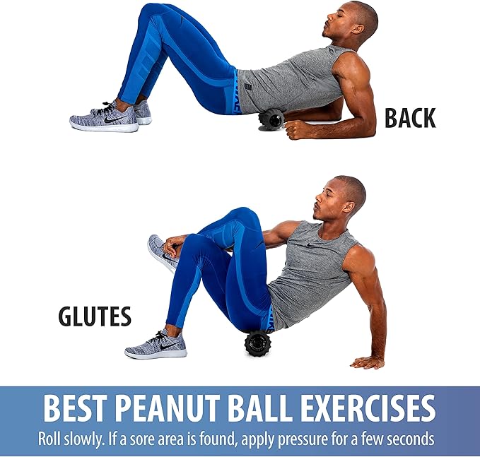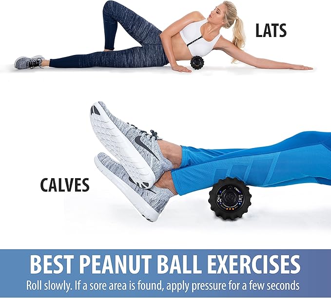 - Myofascial Release: As you roll onto the surface of the peanut massage ball, the low ridges "squeeze" muscles and high ridges "stretch" muscles to help alleviate any discomfort, muscle aches and spasms on your arms, lower/upper back, neck and legs