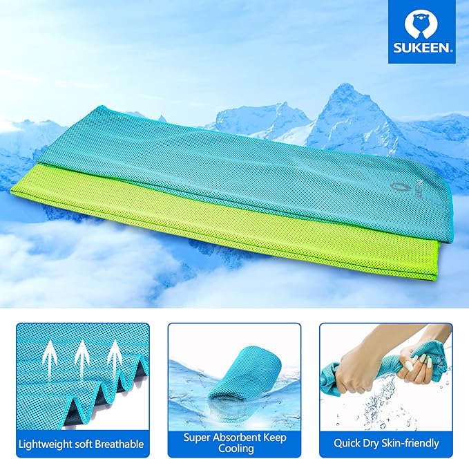 - MULTIPURPOSE SPORTS TOWEL: It's perfect for sports fans into golf, swimming, football, workout, gym and fitness, also works for fever or headache therapy, heatstroke prevention, sunscreen protection, cooling while absorbing. Keep yourself cool during hot summer days, workout sessions, outdoor adventures or when someone has a migraine. If you are sweating a lot, rinse the 'salty water' out from time to time. Salt reduces evaporation/cooling rate.