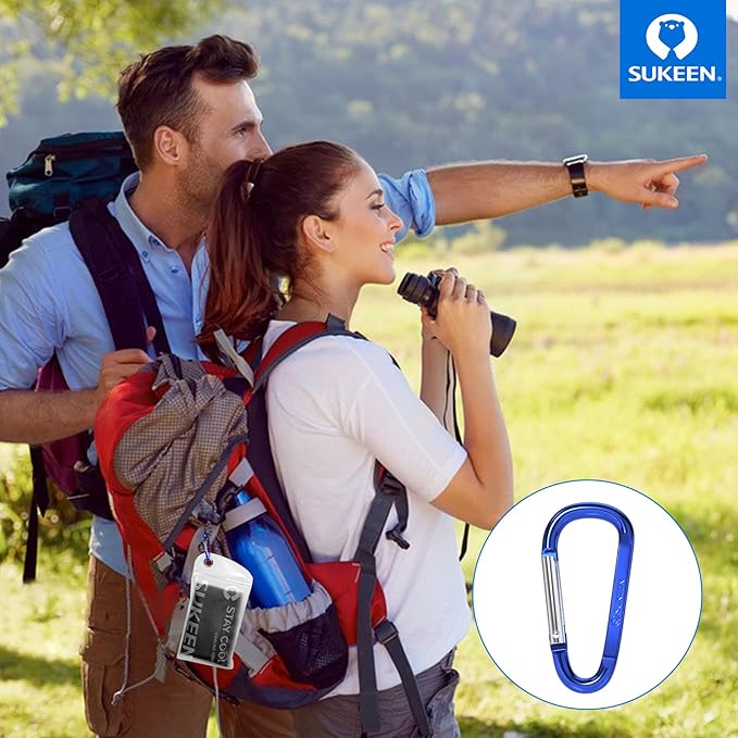 - CARRYING POUCH WITH CARABINER CLIP: With the waterproof plastic pouch, it's easy to carry the chilly towel on a rock climb, golf trip, corssfit training, etc. The reusable pouch is friendly to earth and saves more space than a bottle. The storage pouch comes with carabiner clips of vibrant colors that match the towel, making it a great gift for all ages. The clip makes it convenient to attach the cooling towel to the belt of sports bag and traveling backpack.