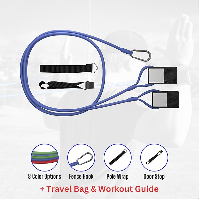 BB Bands Baseball Softball Resistance Training Bands - Arm Strength, Pitching Conditioning Equipment, 3 Strengths (Youth, Adult, Heavy), 7 Colors, Includes Anchor Strap, Door Mount, Bag, Workout Guide