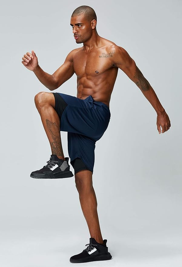 Pinkbomb Men's 2 in 1 Running Shorts Gym Workout Quick Dry Mens Shorts with Phone Pocket