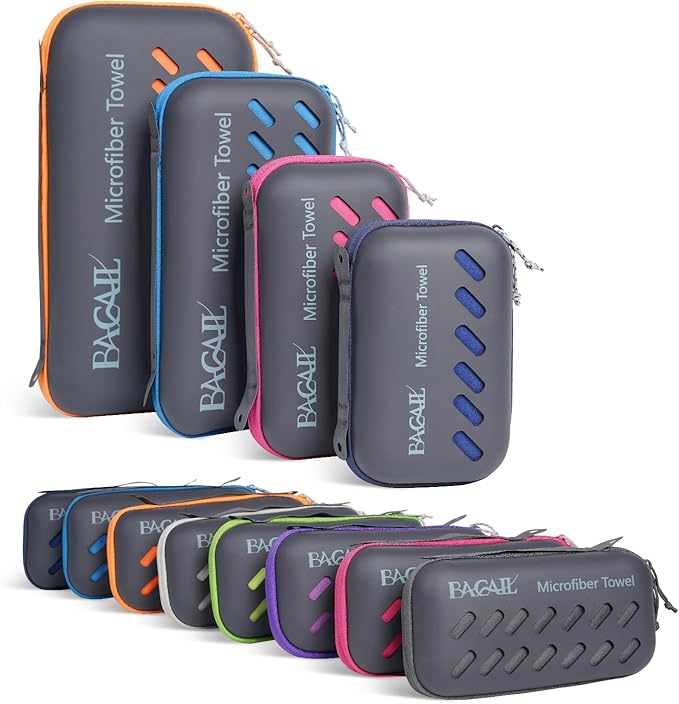 - Portable Travel Towel Case: BAGAIL microfiber towel comes with a soft, zippered EVA case that not only protects the towel, but also makes it easy to pack and carry with you on the go