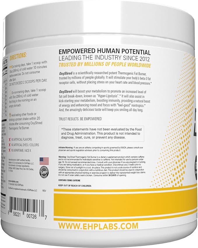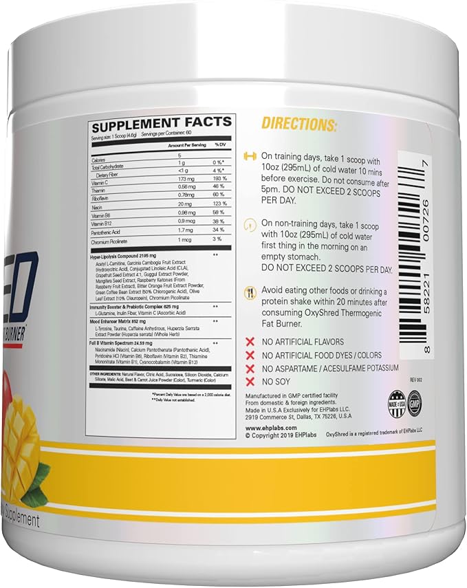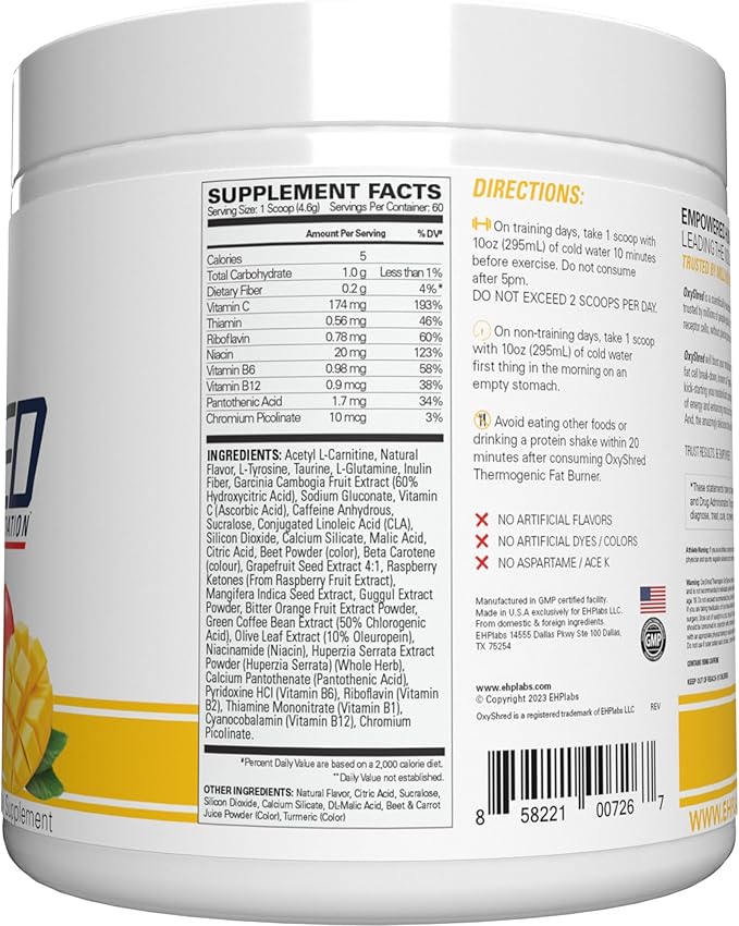 EHP Labs OxyShred Pre Workout Powder - Preworkout Powder with L Glutamine & Acetyl L Carnitine, Energy Boost Drink - Mango, 60 Servings
