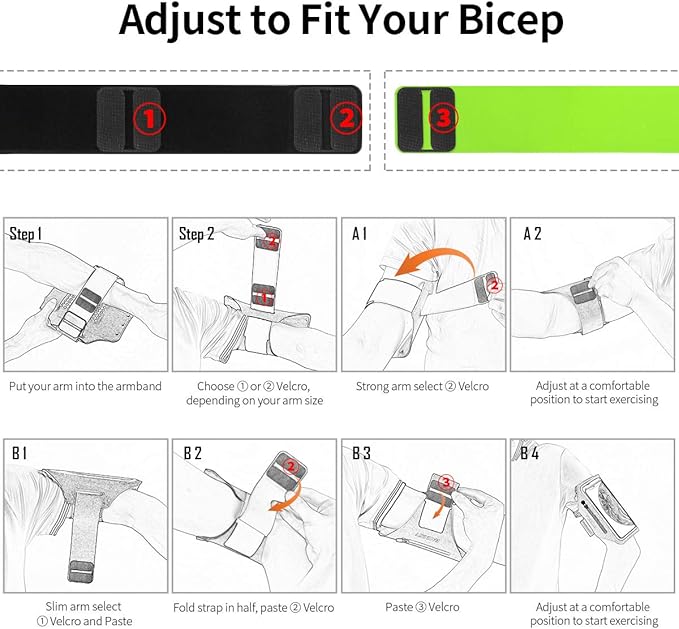 - 【High-quality Material】 High quality lightweight fabric and TPU, light weight, water-resistant, sweatpoof and washable. The armband stretches softly and does not scratch the skin. Triple magic stickers perfect to fit arm circumferences: SMALL 8" - LARGE 15".