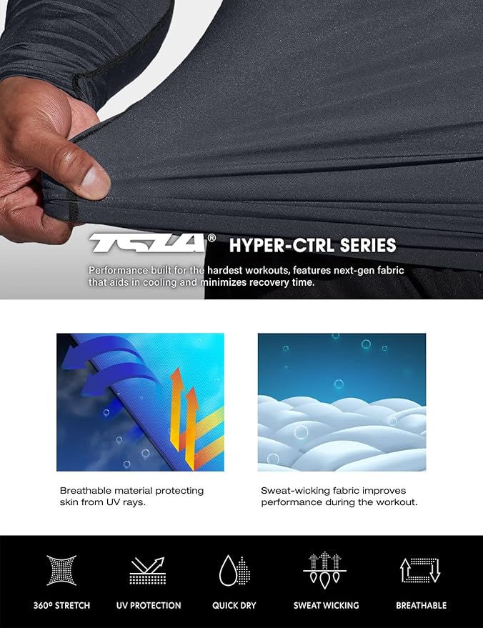 TSLA Men's UPF 50+ Compression Shirts, Cool Dry Long Sleeve Athletic Tops, Sports Baselayer Workout Shirt
