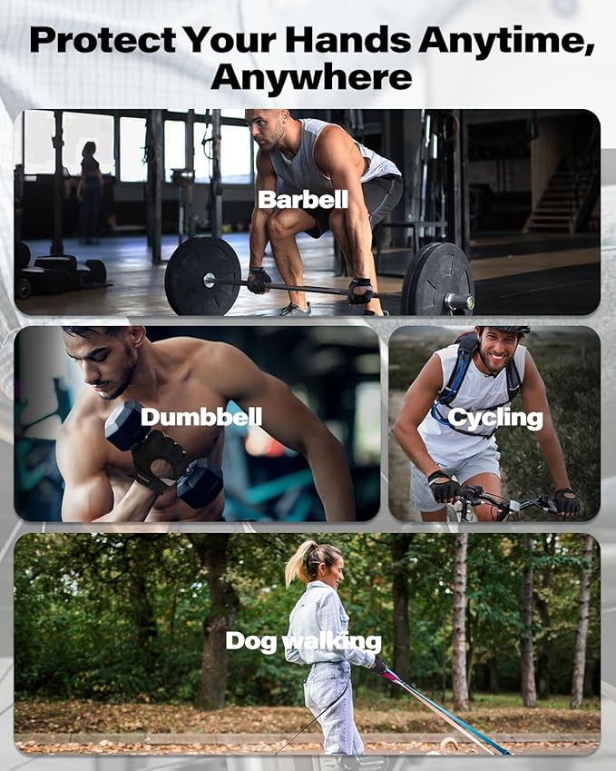 - ✅【Comfy & Breathable】The well-ventilated back of gym gloves boast their skin-friendly and resilient Lycra fabric that offers you amazing comfort. What is really neat about these is the hollow back design, which allows your hands to breathe so your hands won't get sweaty and the gym gloves won't be smelly. Enjoy wearing the lifting gloves for an extended period of time, odor free!