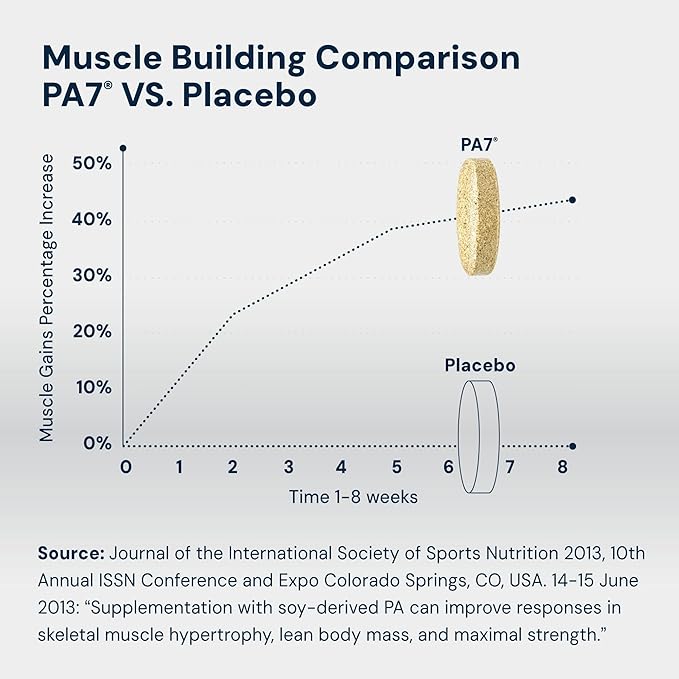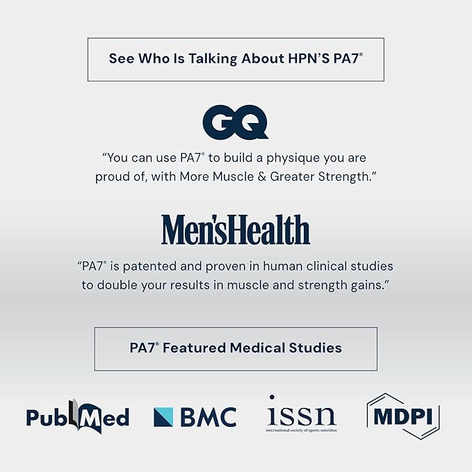 - VALIDATED THROUGH CLINICAL STUDIES - Published double blind research has shown significant benefits of PA(7). Subjects saw a 200% increase in lean muscle mass, lost 260% more fat mass, and gained 47% in bench press strength. Amino Acid absorption also increased by as much as 66.7% with ATP production rising by 18%.