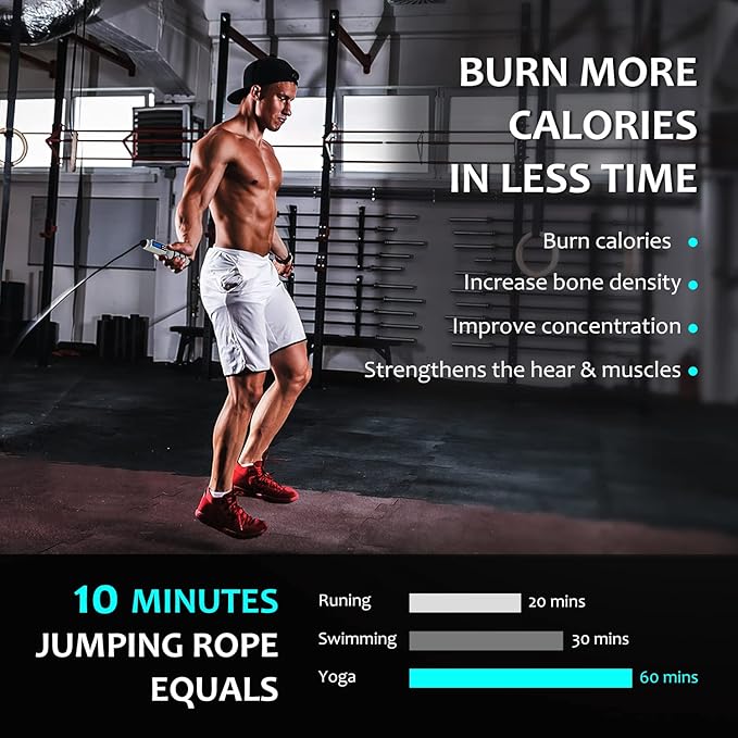 - 【Fitness Jump Rope】Rope jumping not only helps to burn calories, but can also shape your cardio endurance, stamina, and speed while improving the muscle tension of your whole body. A great choice for boxing, MMA, and cross-training. Great for both indoor and outdoor workouts