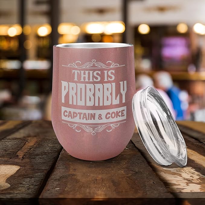 Veracco This Is Probably Captain & Coke Double Wall Insulated Tumbler with Splash Proof Lid Funny Gift For Someone Who Loves Drinking Bachelor Party Favors (Stainless Steel,12Oz,Rose Gold)