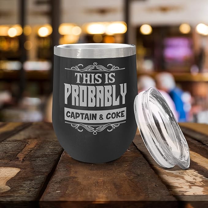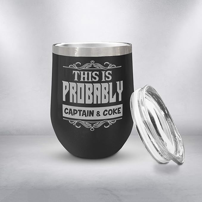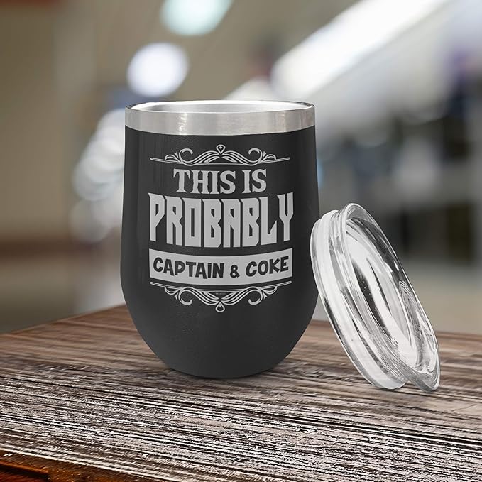 Veracco This Is Probably Captain & Coke Double Wall Insulated Stainless Steel Tumbler with Splash Proof Lid Funny Gift For Who Loves Drinking Bachelor Party Favors (Black)
