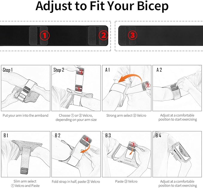 - 【High-quality Material】 High quality lightweight fabric and TPU, light weight, water-resistant, sweatpoof and washable. The armband stretches softly and does not scratch the skin. Triple magic stickers good to fit arm circumferences: SMALL 8" - LARGE 15".