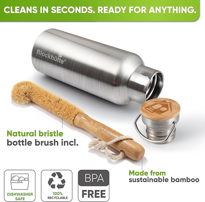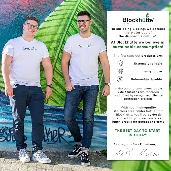 Blockhütte Vacuum Insulated Stainless Steel Water Bottle - 34 oz | Wide Mouth Insulated Metal Bottle for Cold Drinks | Perfect for Travel, School, Kids, Adults, Water Canteen, BPA-Free
