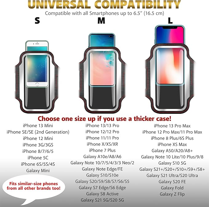 - [There's No Comparison] Our premium sports cell phone armband is designed to comfortably fit all Apple iPhones, Samsung Galaxy, Android, Pixel, LG, Moto, Huawei and other smartphones similar in size and dimensions; Accommodates all phone cases, too, including Otterbox, Lifeproof; Just size up if you're using a thicker phone case